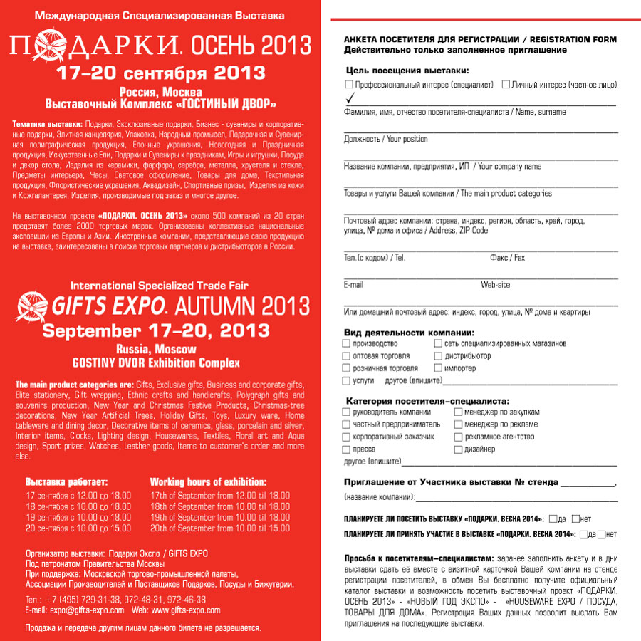 Приглашает всех желающих посетить выставку, которая будет проходить с 17.09.по 20.09.2013г. по адресу: ВК Гостинный двор, Варварка, д.3, ул. Ильинка, д.4 павильон № Н21, где Вы сможете приобрести нашу продукцию по самым